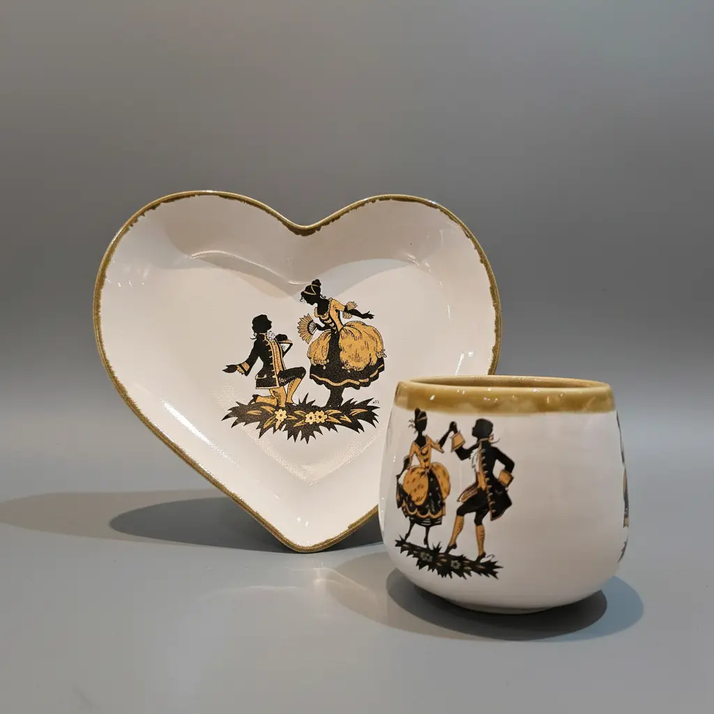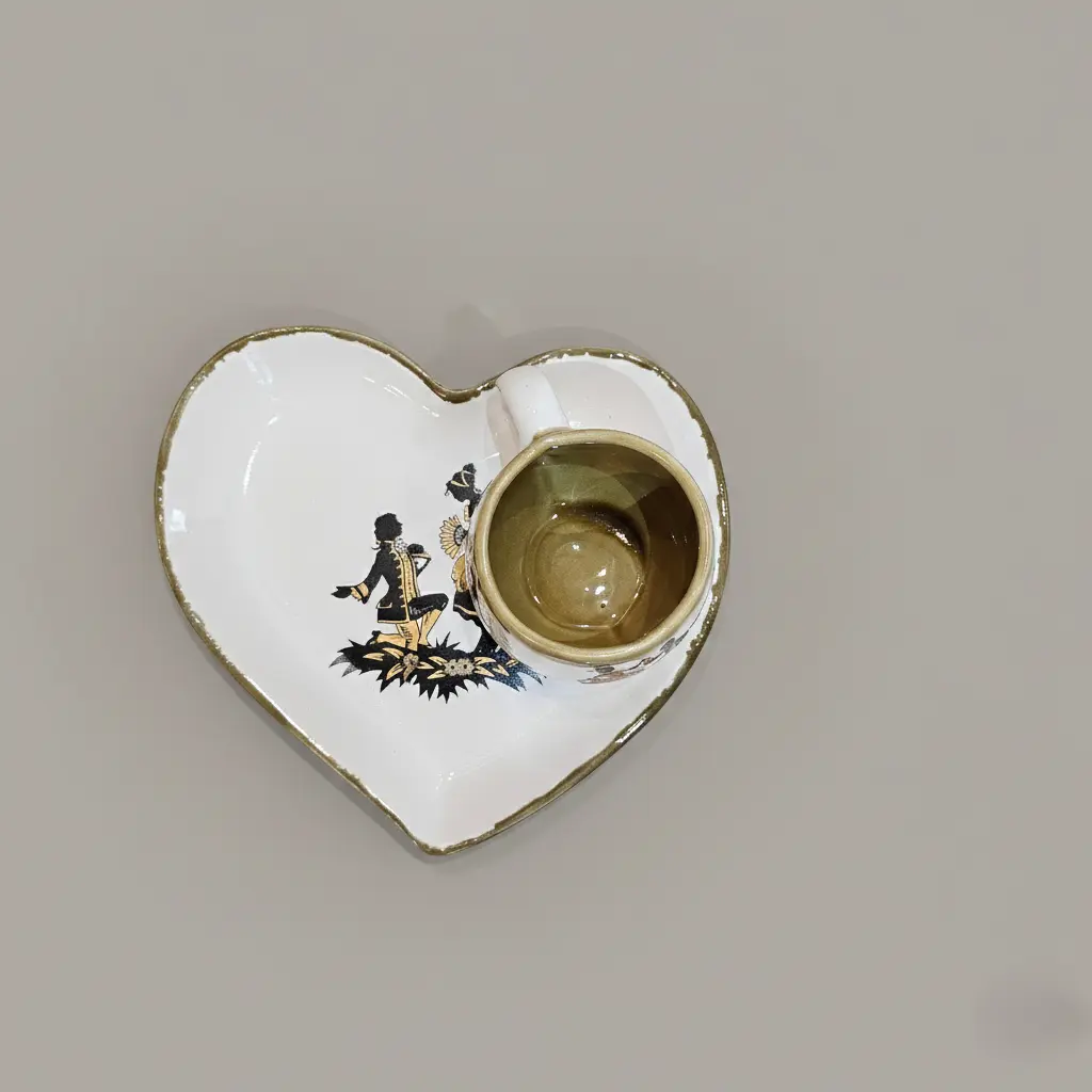 این مجموعه بی نظیر شامل یک ماگ زیبا و یک سینی تک نفره قلبی است که هر دو با طرح های سیلوئت کلاسیک تزئین شده اند. سینی قلبی شکل، علاوه بر کاربرد اصلی خود برای سرو نوشیدنی و خوراکی، به تنهایی یک عنصر دکوراتیو جذاب محسوب می شود. ماگ نیز با طراحی ارگونومیک و طرح دلنشین خود، تجربه ی نوشیدن قهوه، چای یا هر نوشیدنی دلخواهتان را لذت بخش تر می کند. این ترکیب، ایده آل برای پذیرایی های دونفره یا حتی لحظات تنهایی شماست.