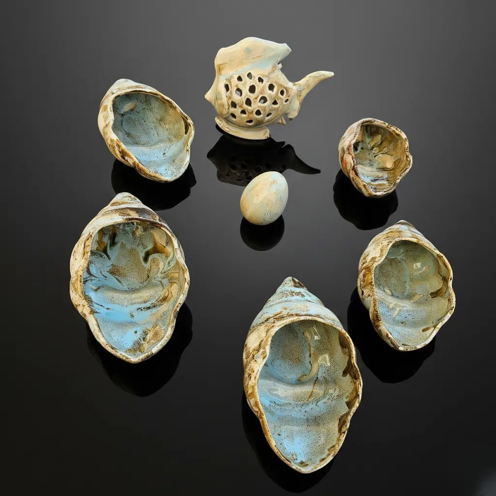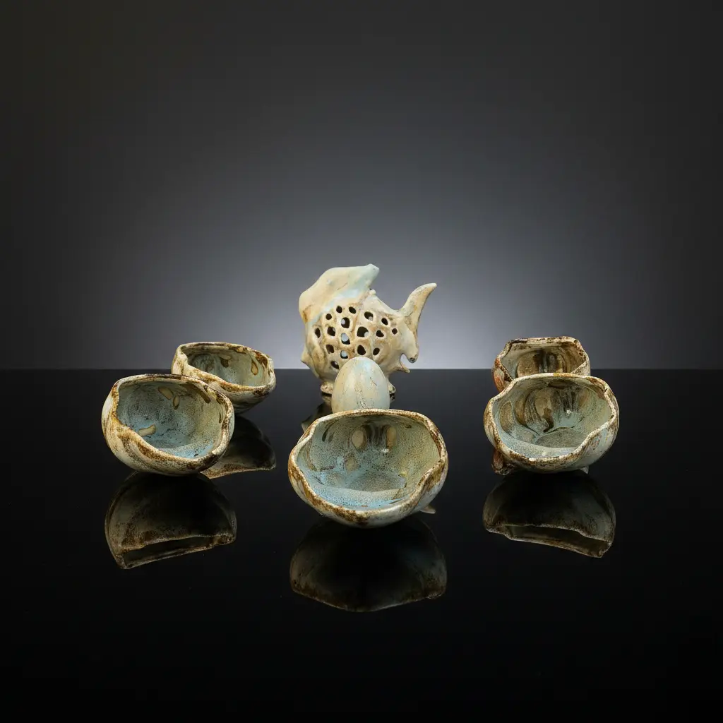این هفت سین سرامیکی، نتیجه ی ساعتها کار هنرمندان خلاق ماست. هر یک از شش کاسه صدف شکل و جا شمعی ماهی شکل، با دست تراشیده و شکل داده شده اند. این رویکرد دستساز، تضمین کننده منحصر به فرد بودن هر قطعه است؛ هیچ دو سفارشی کاملاً شبیه به هم نخواهند بود. از لمس لطیف سرامیک تا جزئیات دقیق طراحی، همه چیز برای ایجاد حسی از لوکس بودن و اصالت در کنار هم قرار گرفته است.